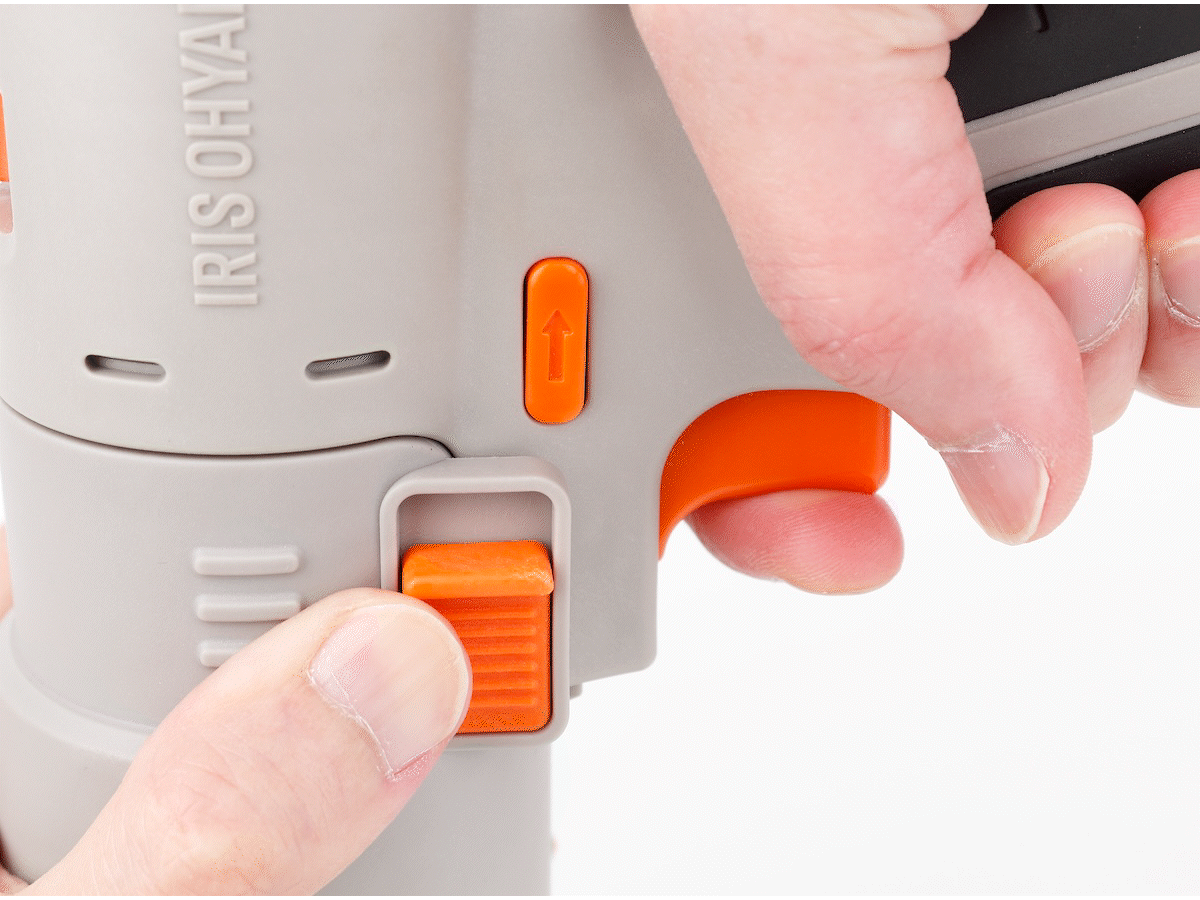 基本的な使い方はどのヘッドでも共通で、動作スイッチを押せば動き出すというもの。この動作スイッチは少しだけ押すと低速、深く押すと高速となるため、丁度いい速度で使えるのがメリットです。また、動作スイッチのすぐ上には正転・反転スイッチがあるので、親指で手早く切り替えることもできます。このあたりの使い方は、電動ドライバーと同じですね。