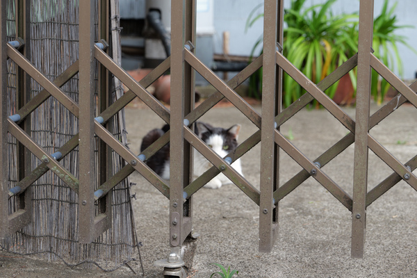 今回は、フェンス越しとか草越しとか手前に障害物がある猫にばかり出会ってしまったので、冒頭写真もその流れで。これもフェンス下の隙間から撮った猫だ。