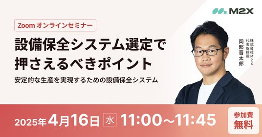 株式会社M2X(本社:東京都中央区、代表取締役:岡部晋太郎)(以下「当社」)は、「設備保全システム選定で押さえるべきポイント」をテーマとした無料オンラインセミナーを開催致します。