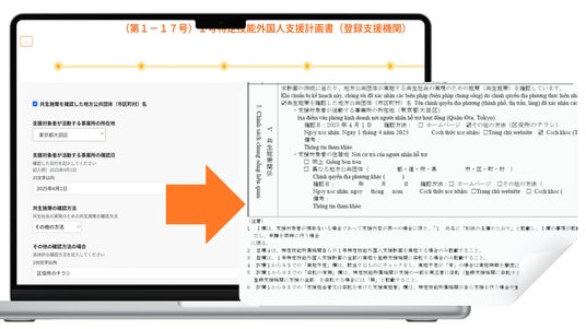 - 多言語翻訳機能:申請内容を外国人材本人が正確に理解できるよう、多言語での表示・確認を可能にしています。