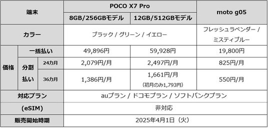 株式会社オプテージ(大阪市中央区)は、携帯電話サービス「mineo(マイネオ)」において、「POCO X7 Pro」「moto g05」の販売を2025年4月1日(火)より開始いたします。