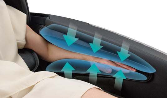 新形状の腕部エアーマッサージは、よりリラックスした姿勢で体感いただけるように手のひらを下向きに置く方式に改善の上、前腕から指先までエアーバッグが包み込み、よりホールド感を生み出すような設計としています。