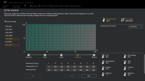 BIOS(UEFI)の起動とともにファン回転数を制御する「Q-Fan Control」。ラジエーターファン=CPU_FANで制御。ここでは「Silent」モードで動作
