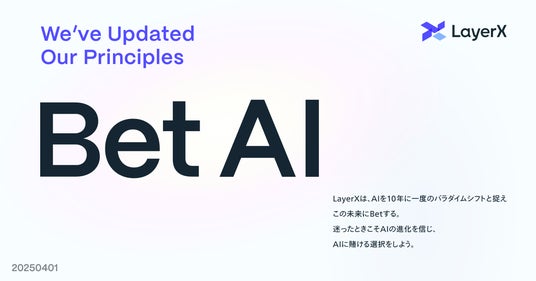 すべての経済活動のデジタル化を目指す株式会社LayerXは、2025年4月1日に、当社が掲げる行動指針の一つである「Bet Technology」を「Bet AI」にアップデートしたことをお知らせします。