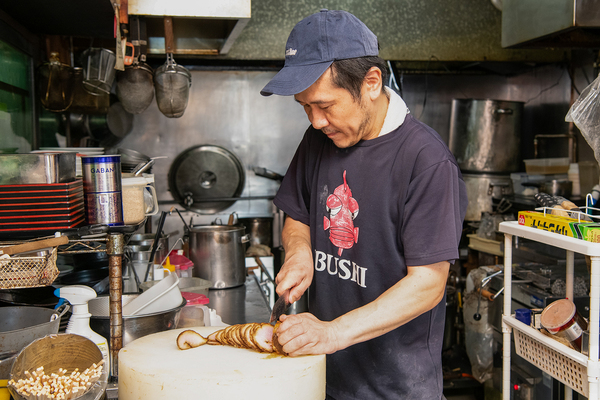 具材でも「地元愛」を表現。笹かま、ずんだを連想させる枝豆入りのオリジナル練り物を考案した。スープに合う磯の香りも、宮城県産黒バラ海苔で加える。さらに春を意識し、ダイコンで作ったピンク色の花をしつらえた。ほか、鶏ムネと豚肩ロースの各チャーシュー、揚げレンコン、針ショウガなどをバランスよく配したスペシャル感漂う一杯に、食指が動く。