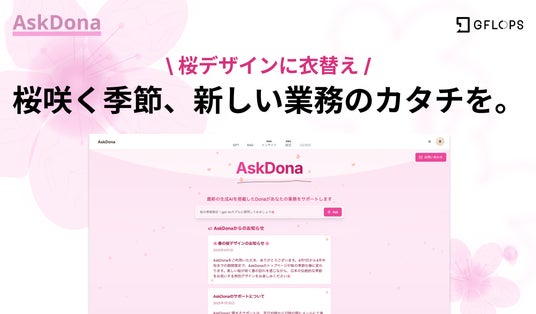 株式会社GFLOPS(本社:東京都渋谷区、代表取締役CEO:盛本マリア、共同代表:鈴木亮祐、以下、当社)は、法人向け生成AI活用プラットフォーム「AskDona」のトップページにおいて、期間限定で桜デザインに変更したことをお知らせいたします。
