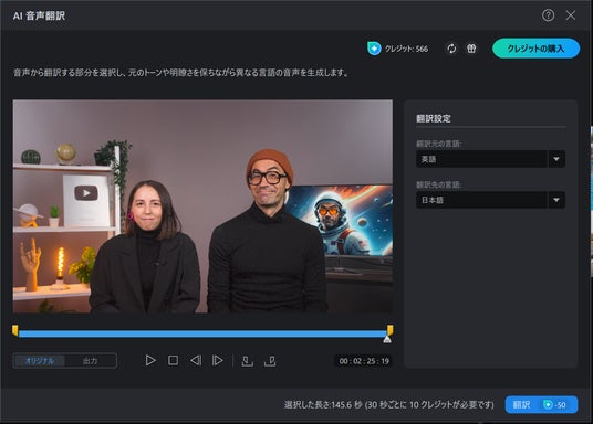 AI 音声翻訳:30 秒ごとに 10 クレジット