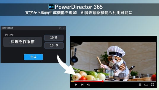 サイバーリンク株式会社(以下、サイバーリンク) は、10 年連続国内販売シェア No.1* の動画編集ソフト「PowerDirector 365」に「文字から動画生成」機能を新たに追加し、テキストを入力するだけで動画を生成できるようになりました。音声生成機能も搭載されているため、音声付きの動画を生成することが可能です。