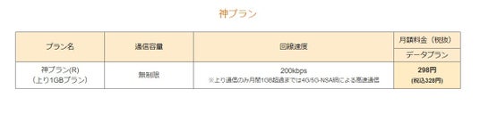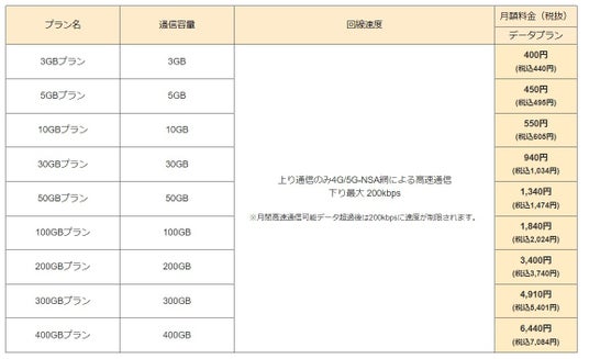 ※月間高速通信可能データ超過後は200kbpsに速度が制限されます。
