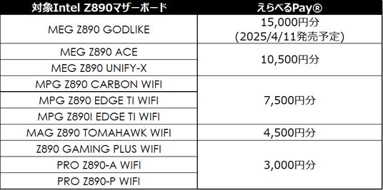 MSI 最新カスタムPCパーツ製品を購入して、最大15,000円分のえらべるPay(R)をゲットしよう!~2025年4月1日(火)より開始~