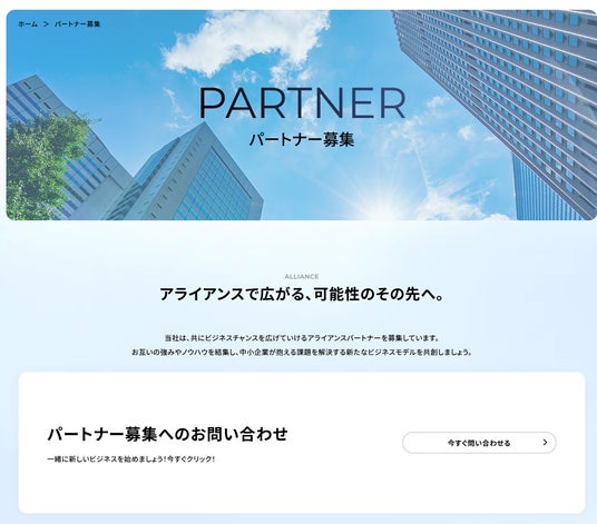 パートナー募集ページでは、当社とのパートナー契約について紹介しています。