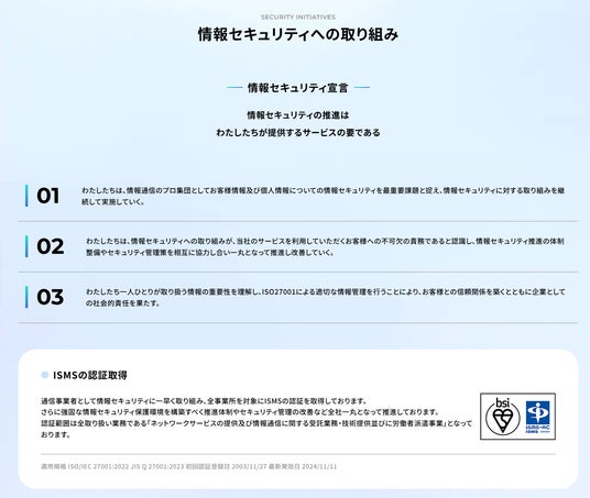 お客様の課題解決のため、キャリアを超えたネットワークの構築・運用と、ICTソリューションサービスの開発提供を行う日本通信ネットワーク株式会社(本社:東京都千代田区、代表取締役社長:高部文宏)は、2025年3月27日よりコーポレートサイトをリニューアルしたことをお知らせいたします。
