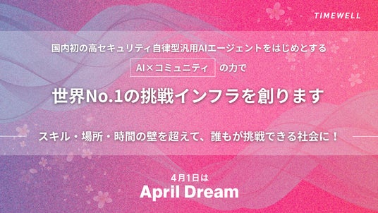 株式会社TIMEWELL(本社:神奈川県横浜市、代表取締役:濱本隆太、以下「TIMEWELL」)は国内初(*1)の高セキュリティ自律型汎用AIエージェントをはじめとするAI×コミュニティの力で、世界No.1の挑戦インフラを創ります。