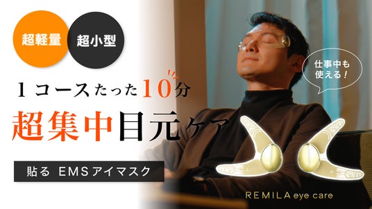 デジタル社会が進む中で、スマートフォンやPCの長時間使用による目元の負担が多くの人の悩みとなっています。『REMILA eye care(レミラ アイケア)』は、目元の筋肉に直接働きかけるEMS技術を採用し、本質的なアイケアを実現する貼るEMSアイマスクとして開発。これまでサロン向けのプロ仕様として培ってきた技術を家庭用に最適化し、より多くの方に安全で効果的なケアを提供したい--。そんな想いから誕生しました。