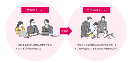 ユビレジではこれまでと同様に、株式会社ライトアップ(本社:東京都渋谷区、代表取締役社長:白石崇)と構築した申請サポート体制を展開いたします。過去4年間のユビレジを通した申請の採択率は9割を超えています。専門性と正確性が求められる申請手続きを、実績のあるサポートチームが準備からスケジュール管理、交付申請内容の確認まで、手厚く支援いたします。