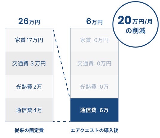 場所にとらわれず事務作業が行えるようになるため、オフィスをバーチャルオフィスに変更したり規模を抑えることができるため、事務6名(管理者含む)の企業で20万円ほど固定費が削減できる試算が見込まれております。