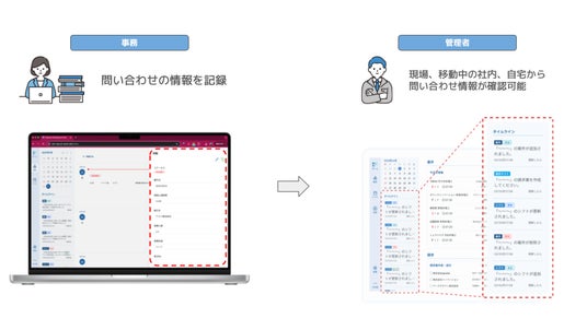 新たな現場の追加や現場情報の削除・更新について「誰が・いつ・何を行ったか」の確認できる機能同じ場所にいなくても現場に関しての情報共有を可能にし、よりスムーズな情報連携が可能に