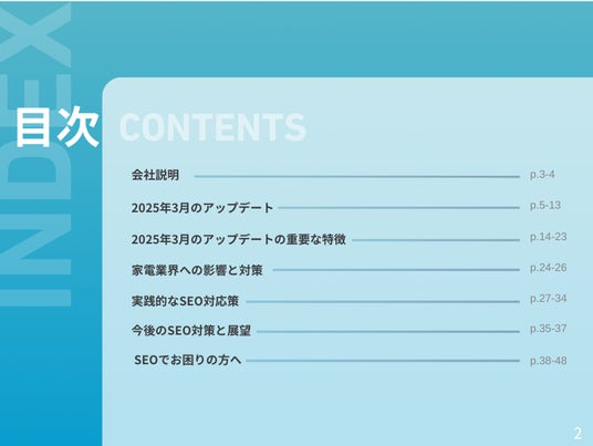 株式会社ベクトル(本社:東京都港区、代表取締役会長兼社長:西江 肇司、東証プライム:6058)の子会社であるOwned株式会社(東京都品川区、代表取締役社長、石井翔、以下「当社」)は、家電業界向けに「Googleアップデートによる分析レポート」の2025年3月版(全48ページ)を無料公開いたしました。