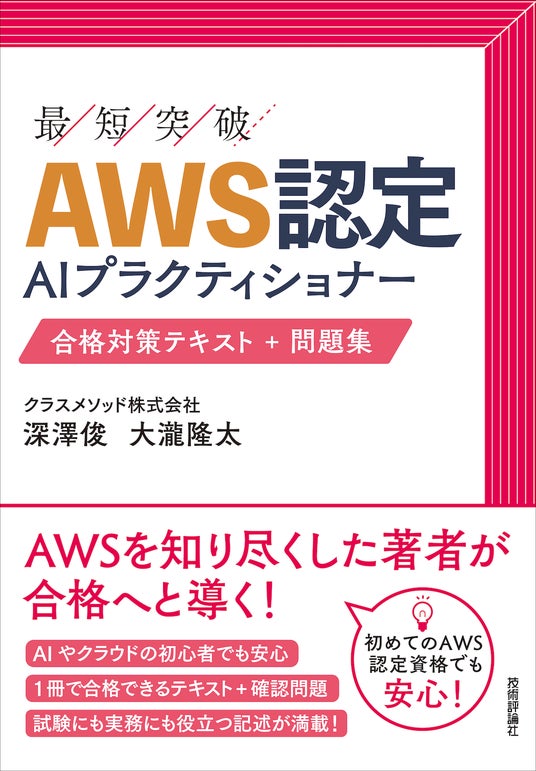 本キャンペーンの対象となる書籍「最短突破シリーズ AWS認定AIプラクティショナー 合格対策テキスト+問題集」は、クラスメソッド株式会社の教育事業ディレクター大瀧隆太氏とプロダクトマネージャー深澤俊氏が執筆したものです。この書籍は単なる試験対策にとどまらず、AIやAWSを理解するための本質的な考え方を解説しており、AI時代のエンジニアにとって貴重な学習リソースとなっています。
