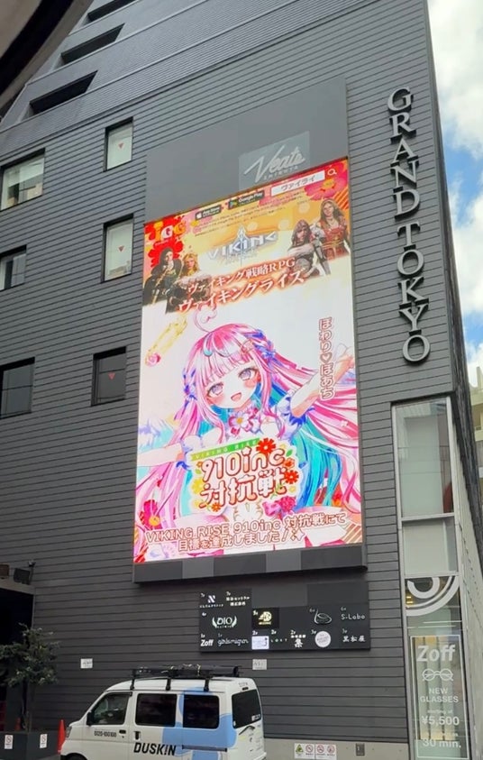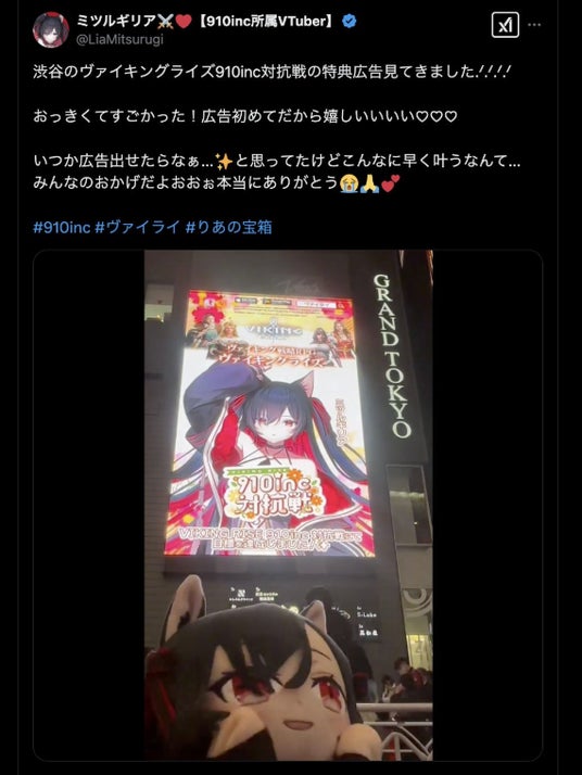 ヴァイキングライズ910inc対抗戦イベントの特典を獲得した910inc専属VTuberメンバーが渋谷大型ビジョン"Veats Shibuya Vision"にCMが掲載されました。