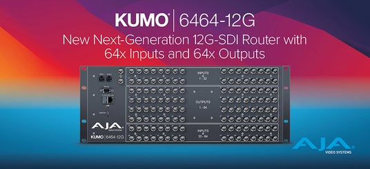 AJAの新しいKUMO 6464-12Gは、放送、制作、ポストプロダクション、プロAV環境全体で比類のないルーティング機能を提供し、64の12G-SDI入力と64の12G-SDI出力を誇ります。