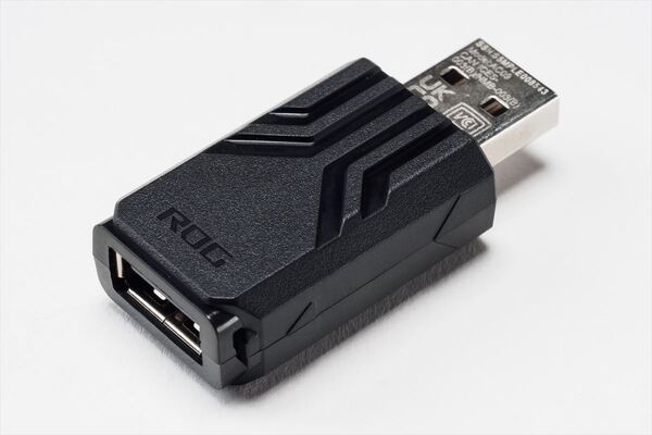 標準状態でも十分なレスポンスを発揮しますが、最大8000Hzのポーリングレートを利用するには、同梱の「ROG Polling Rate Booster」が必要です。このアクセサリーがない場合、ポーリングレートは1000Hzに制限されます。