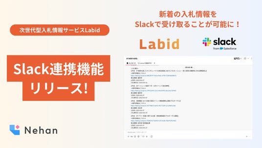 Nehan株式会社(本社:東京都渋谷区、代表取締役:鶴巻百門、木嶋諄)は、生成AIを活用した次世代型入札情報サービス『Labid』において、「Slack連携機能」をリリースしたことをお知らせいたします。
