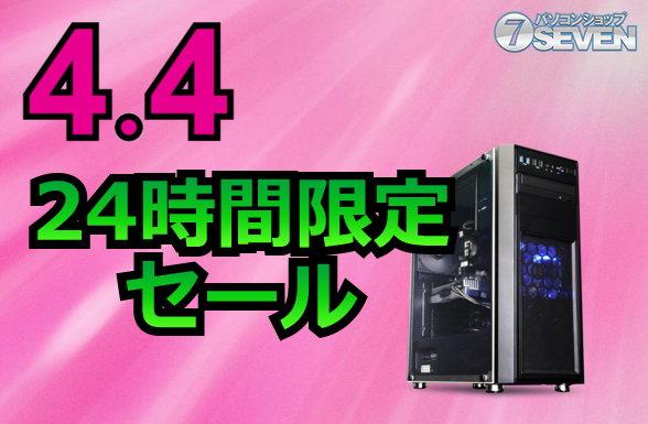 セブンアールジャパンが運営するパソコンショップSEVENが、4月4日に限定セールを開催する。この1日限りのビッグセールでは、最新のゲーミングPCやデスクトップPCが最大72,000円オフで手に入るチャンスだ。