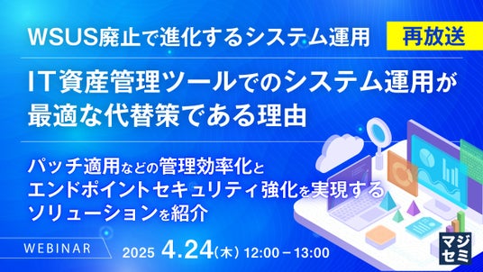 マジセミ株式会社は、大変好評をいただいた「【再放送】WSUS廃止で進化するシステム運用:IT資産管理ツールでのシステム運用が最適な代替策である理由」というテーマのウェビナーを再放送します。