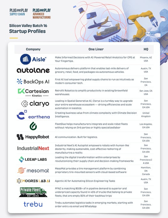 Plug and Playのシリコンバレー本社が主催する「サプライチェーン・バッチ16・セレクション」は、サプライチェーン分野におけるイノベーション創出を目的としたアクセラレーション・プログラムです。大手企業、投資家、研究機関などとスタートアップをつなぎ、事業成長を多角的に支援する取り組みで、今回で16回目の開催を迎えています。