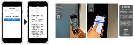 本サービスは、受付・売り場・個室・トイレ・試着室・鍵付き個室の扉など、スタッフを呼びたいあらゆる場所に簡単に設置することができ、無人でお客様の一次対応を実現させるものです。2024年3月より、東武鉄道株式会社の特急スペーシア Xにおいて、お客様が多目的室の利用を希望する際に、乗務員へのリアルタイム通知サービスとして使用する実証実験を行ってまいりました。これにより、授乳や体調不良などで多目的室を利用されたい方を迅速に把握し、対応できるようになりました。また、デッキに本通知サービスを設置するほか、多言語に対応するなど、さらなる利便性の向上を実現しました。