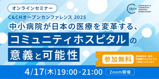 【4/17(木)19:00開催】オンラインセミナー『中小病院が日本の医療を変革する、コミュニティホスピタルの意義と可能性』~ C&CHオープンカンファレンス2025 ~