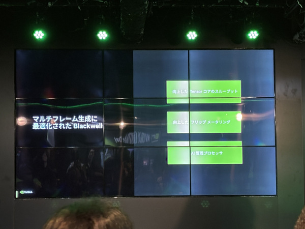 デモセッションでは黒木さんがサイバーパンクを実際にプレーし、RTX 50シリーズによって実現したゲームの画質やフレームレートを向上させるDLSS4を体験。なめらかに画面が動くと驚きの様子だった。