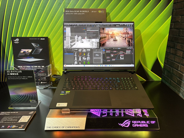 グラフィックスパフォーマンスを大幅に向上させたDLSS 4で最新ゲームをプレーできたほか、ASUS ROGの「ROG Strix SCAR 16 G635LW」のデモ機ではRTX50シリーズとAIにより高度な映像編集などを試せたり、MSIの「Titan 18 HX AI A2XW」ではAIが画像生成したものをシンプルな3Dオブジェクトにするなどといったデモが体験できた。