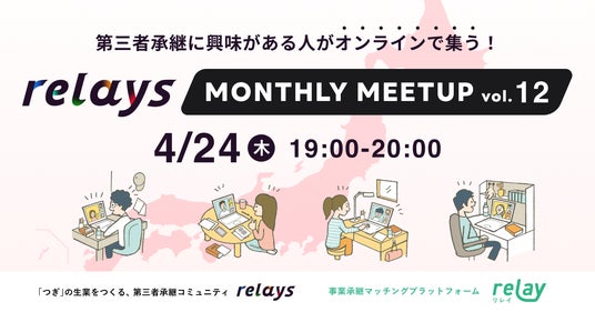【事業承継士に質問ができるオンライン交流会】第三者承継コミュニティ「relays(リレイズ)」、「relays MONTHLY MEETUP vol.12」開催決定!4月24日(木)開催。