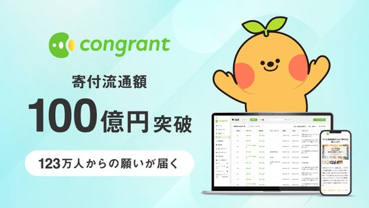 ソーシャルセクターと企業向けに「寄付DXシステム」を提供するコングラント株式会社(本社:大阪市西区、代表取締役:佐藤正隆、以下「コングラント」)は、寄付DXシステム「コングラント」の寄付流通額が100億円を突破したことをお知らせいたします。サービス開始以降約8年を経て、NPO・ソーシャルセクターへ延べ123万回の寄付が寄せられました。