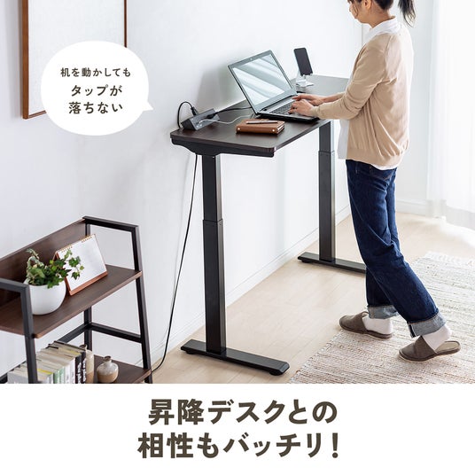 電源タップをデスクにしっかり固定できるクランプ式です。作業中にケーブルを抜き差ししてもタップが動かず、使いやすいです。テレワークや配線整理にもぴったりで、昇降デスクや棚の下など幅広く対応可能です。