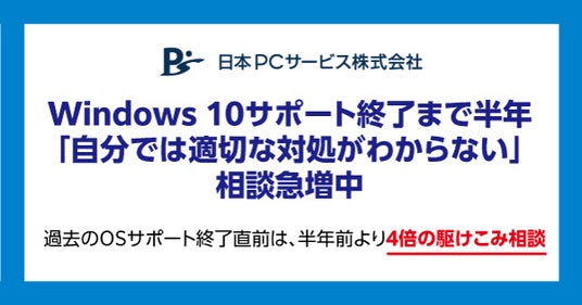 デジタル機器の設定・トラブル解決を行う日本PCサービス株式会社(本社:大阪府吹田市、代表取締役社長:家喜 信行、証券コード:6025、以下「当社」)は、2025年10月14日にWindows 10がサポート終了を迎えることを受け、2025年2月末までに当社に寄せられたOSのアップグレードに関連する相談件数や内容を調査しましたので発表します。