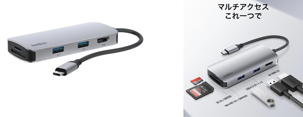 ベルキン、SDカードの読み書きが速いUSBハブ「Connect USB-C マルチポートハブ」シリーズを発売
