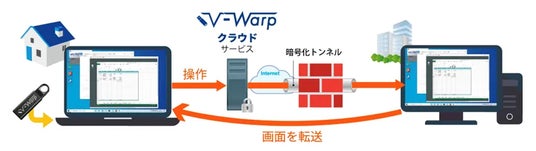 「V-Warp(ブイワープ)」は会社内のPC画面を転送して操作することができるリモートアクセスサービスです。