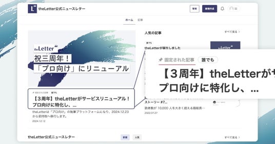 【プロライター・専門家の要望を反映】「theLetter」が管理画面をリニューアル!ニュースレターメディア運営に役立つ機能を拡充
