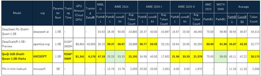 Axcxept株式会社は本日、Multitask 性能と数学推論性能を、わずか2日間の強化学習で、飽和状態だった性能をさらに向上させた超小型言語モデル(LLM)『QwQ-32B-Distill-Qwen-1.5B-Alpha』をオープンソースで公開しました。本モデルは、deepseek-aiの長考モデル、DeepSeek-R1、米国バークレー大学発の研究DeepScalerプロジェクトおよび、アリババクラウドのQwQ-32Bからインスピレーションを得ており、コストを抑えつつ高い推論性能を実現しています。