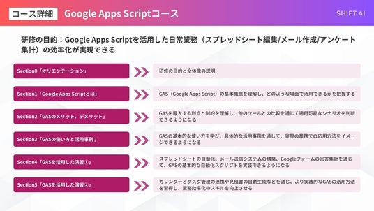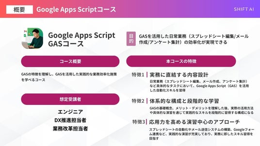 SHIFT AI 法人向け新サービス【Google Apps Scriptコース】2025年4月10日より受付開始