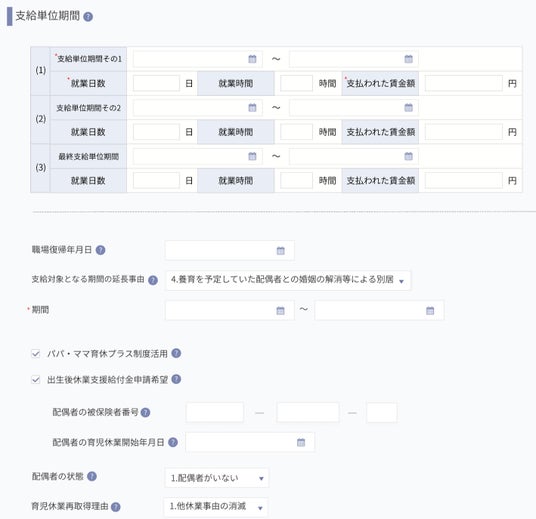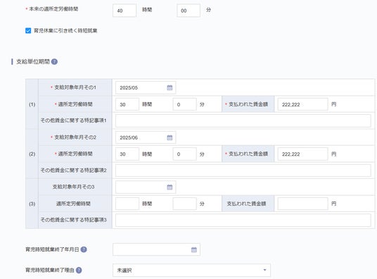 ※育児時短就業給付金支給申請書の入力画面のイメージ