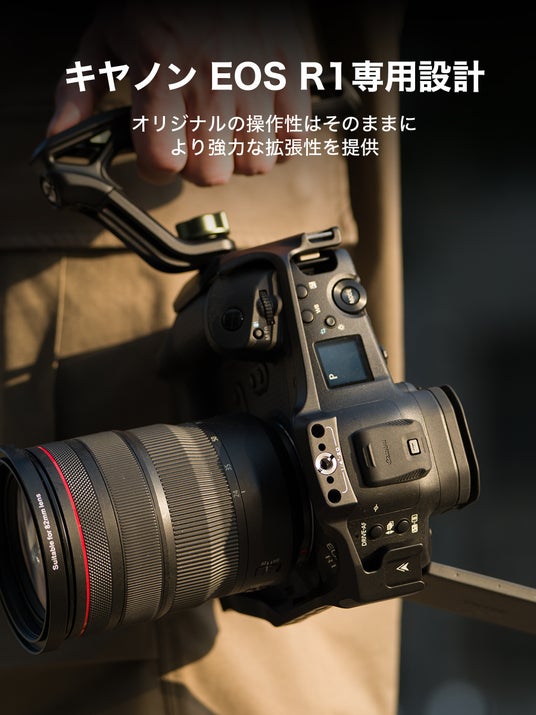 本製品はEOS R1専用に最適化された設計で、カメラ本体との完璧なフィッティングを実現。各種操作ボタンや端子に干渉せず、快適な操作性とスムーズな撮影フローを確保します。