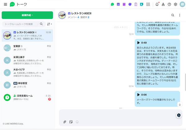 チャンネル内の「LINE WORKSラジャー」ユーザーには音声と文字起こしが送信される。例えば、接客中に色々と指示をされても意識が向かずに覚えきれないことがある。そんな時も、アプリで文字起こしを見れば何を言っていたのかわかるので、聞き返す必要がなく、お互いにストレスがないのだ。