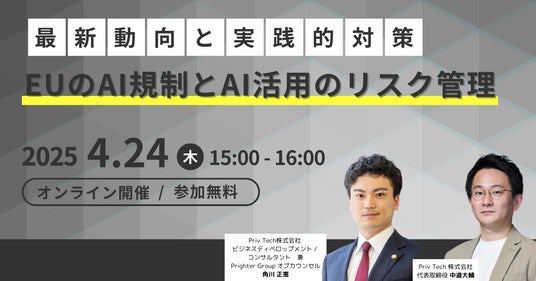 【共催Webセミナー】Prighter × Priv Tech『EUのAI規制とAI活用のリスク管理:最新動向と実践的対策』4月24日(木)15時開催