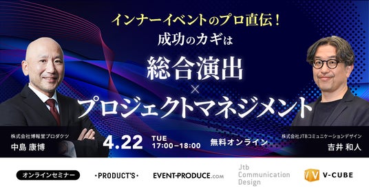 本セミナーには、30年以上にわたり、国内外さまざまなイベントを手掛けてきた博報堂プロダクツ中島氏と、ハイブリッド/オンラインイベントのプロフェッショナルとして研修やセミナーの講師も担当する、JTBコミュニケーションデザイン吉井氏が登壇し、参加者の心を動かす「感動体験」の設計方法を解説いたします。