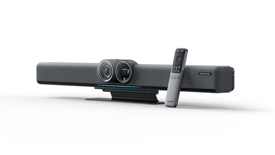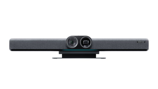 本製品はビデオサウンドバーの形状ながら、圧倒的な機能を搭載しています。ビデオサウンドバーでは初のPTZ(パン、チルト、ズーム)タイプのジンバルカメラが搭載されており、スピーカートラッキングで滑らかかつスムーズな追尾映像を提供します。