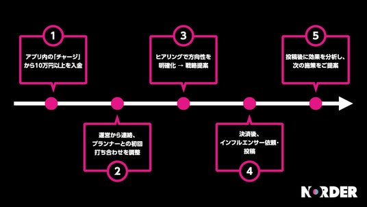 これまでのNORDERは、AIによるインフルエンサー提案や投稿内容と再生数分析など、データに基づいたプロモーション支援を行ってきました。今回の「専属プランナー」では、従来の機能に加えてプロによるヒアリングから施策の振り返りまで、伴走型の支援を受けることができます。